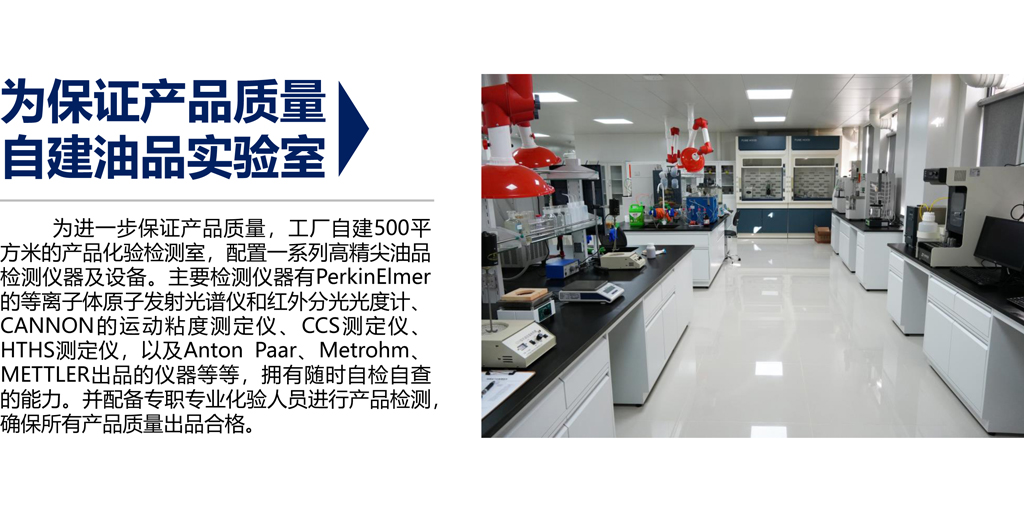 為進(jìn)一步保證產(chǎn)品質(zhì)量,工廠自建500平方米的產(chǎn)品化驗(yàn)檢測(cè)室,配置一系列高精尖油品檢測(cè)儀器及設(shè)備。擁有隨時(shí)自檢自查的能力,并配備專職專業(yè)化驗(yàn)人員進(jìn)行產(chǎn)品檢測(cè),確保所有產(chǎn)品質(zhì)量出品合格。