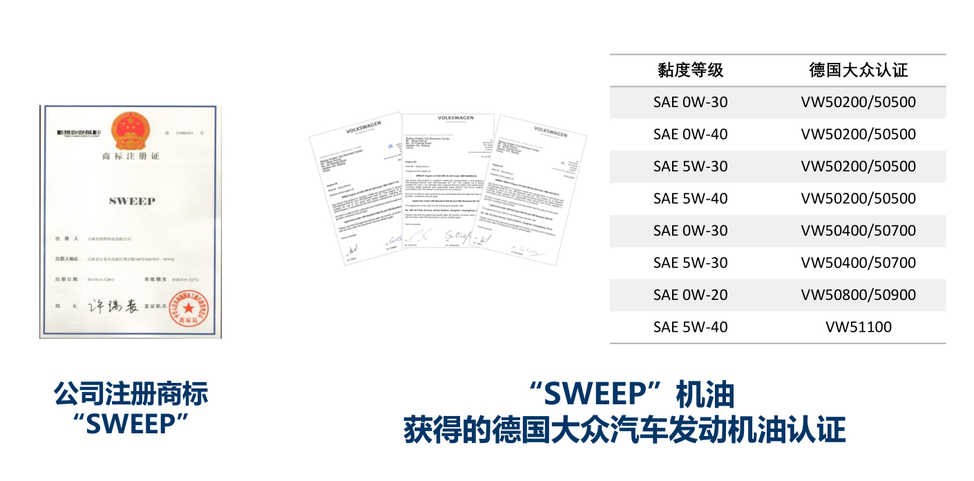 由我們公司提供的“SWEEP”品牌汽車服務(wù)用潤滑油,完全符合相關(guān)國家、行業(yè)和相對應(yīng)的汽車品牌生產(chǎn)廠家的質(zhì)量標(biāo)準(zhǔn)(以原廠發(fā)動機用潤滑油品的技術(shù)要求或權(quán)威第三方檢測報告為準(zhǔn))!